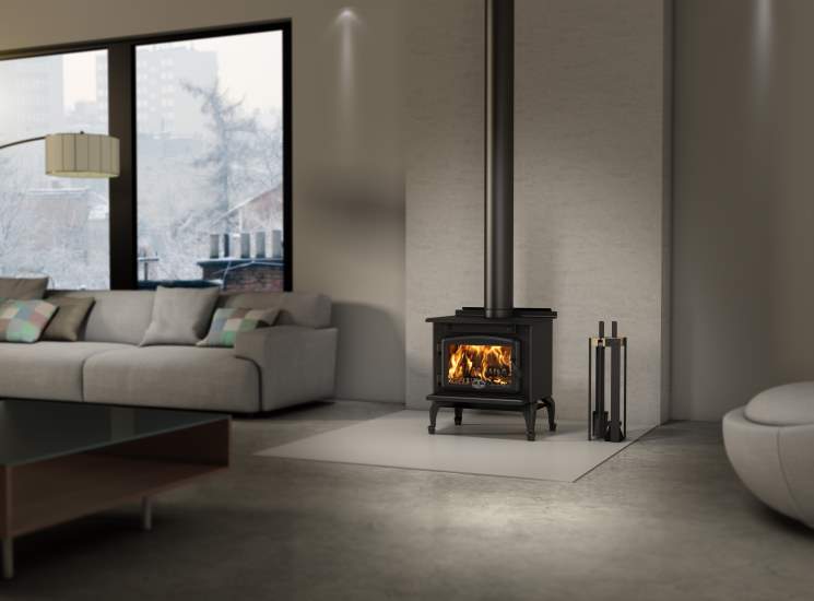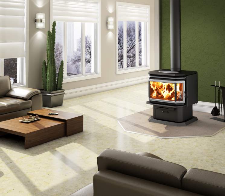 Le Horizon : d’un style épuré et moderne, ce foyer au bois est d’une bonne grandeur. La chambre à combustion de 4,28 pieds cubes peut contenir 60 lb de bois, faisant en sorte qu’il peut brûler pendant une dizaine d’heures! Très écoénergétique, l’appareil respecte la norme du programme environnemental de l’EPA. Superficie de chauffage 1,000 à 2,800. Puissance thermique de 95,000 BTU/h.