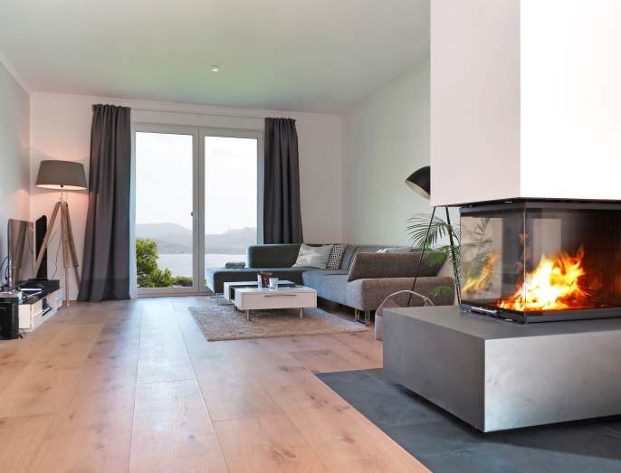 - Modèle Atrium : ce foyer à 3 faces est idéal pour diviser les zones de divertissement et créer un maximum d’impact et de chaleur. Vous pouvez personnaliser votre foyer avec un choix de revêtement de briques, de bois flottant, de bûches, de verre, de braise ou de roches.